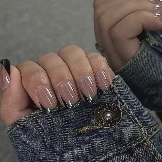Boss Babe Short Square Black Tip Nails - Press On Nails